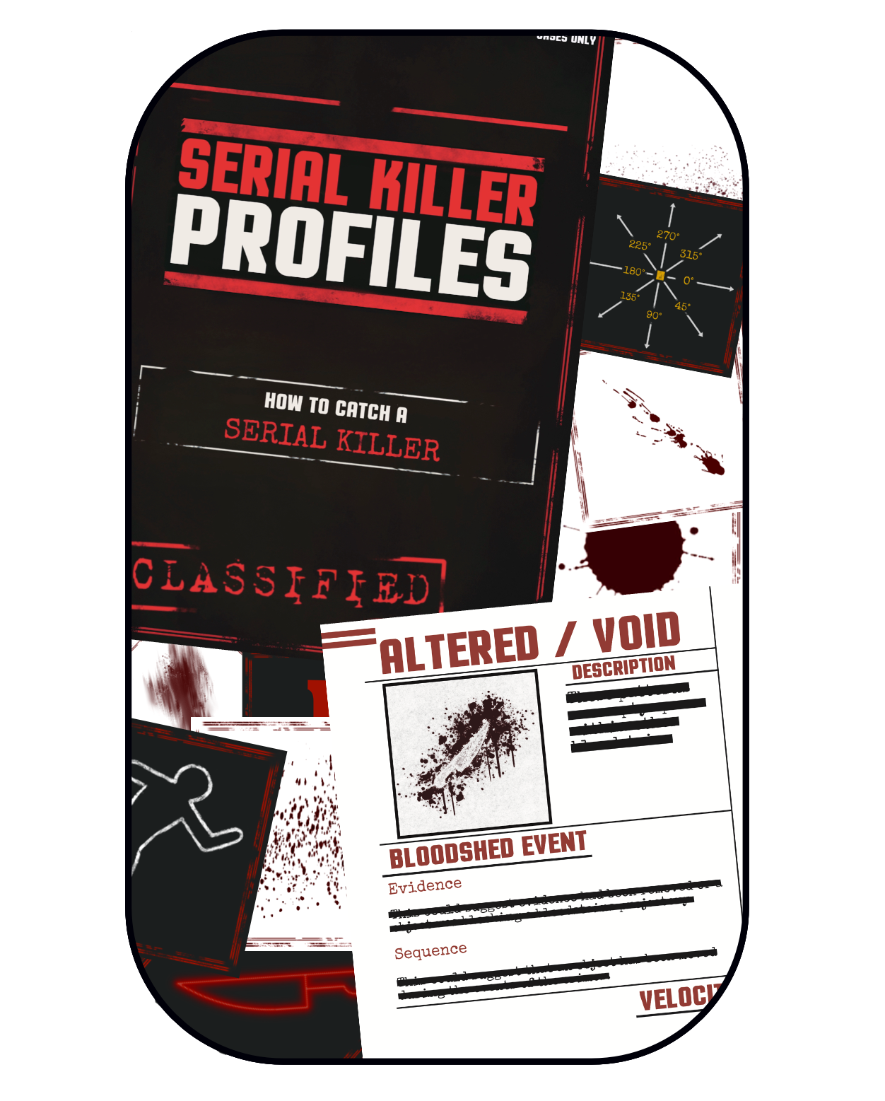 Use bloodstain guides, killer profiles and a bunch more 3D printed tools to track your leads.